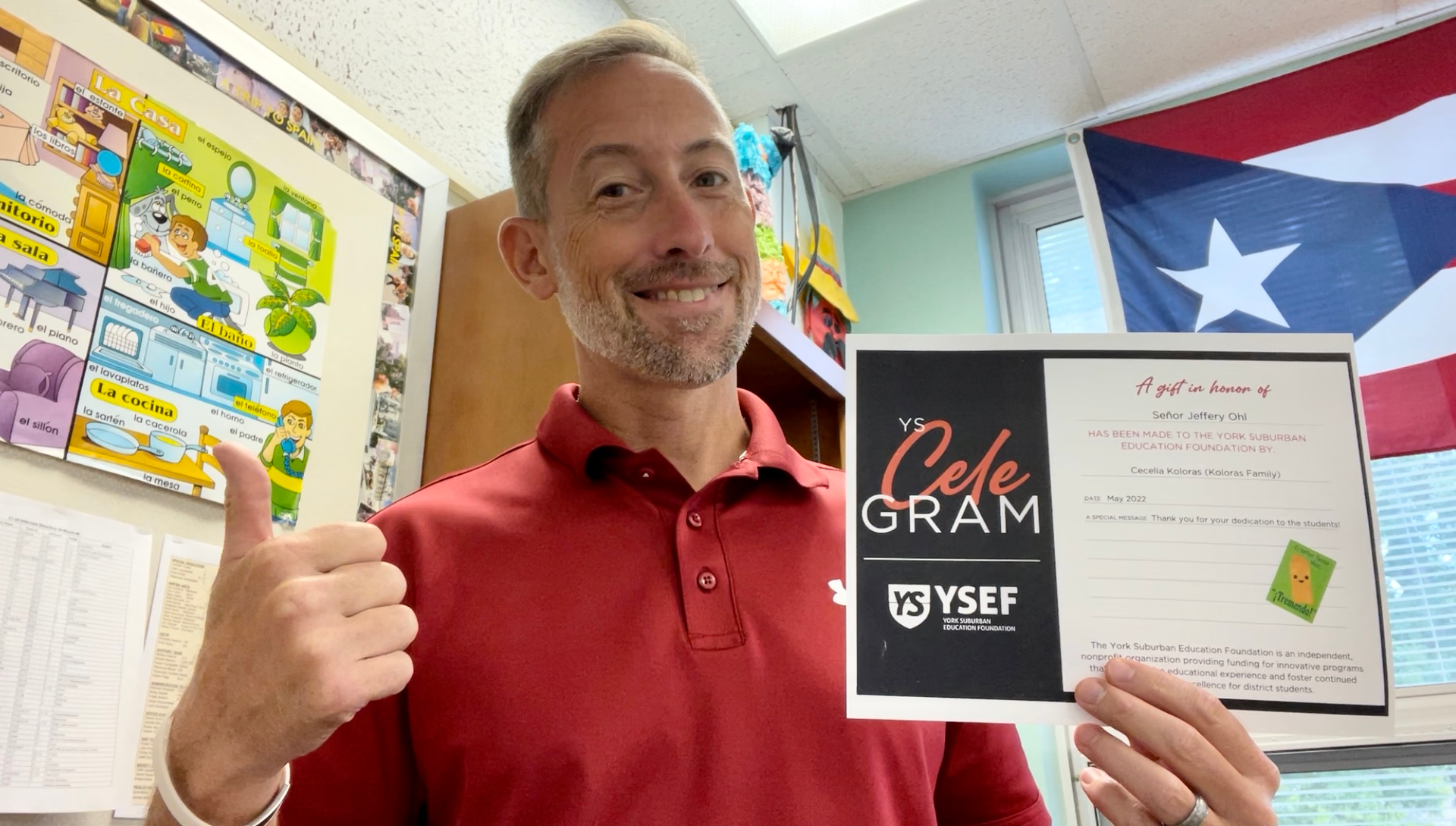 YS CeleGrams can be made in any amount from $5.00 upwards and can be a gift from an individual or a group, such as an entire classroom. The amount of the donation for the YS CeleGram is kept confidential. Upon receipt of the online or paper completed order form and accompanying payment, the YSEF will distribute an electronic YS CeleGram to the staff member of your choice. Please use the "donate" button on the banner to submit payment.