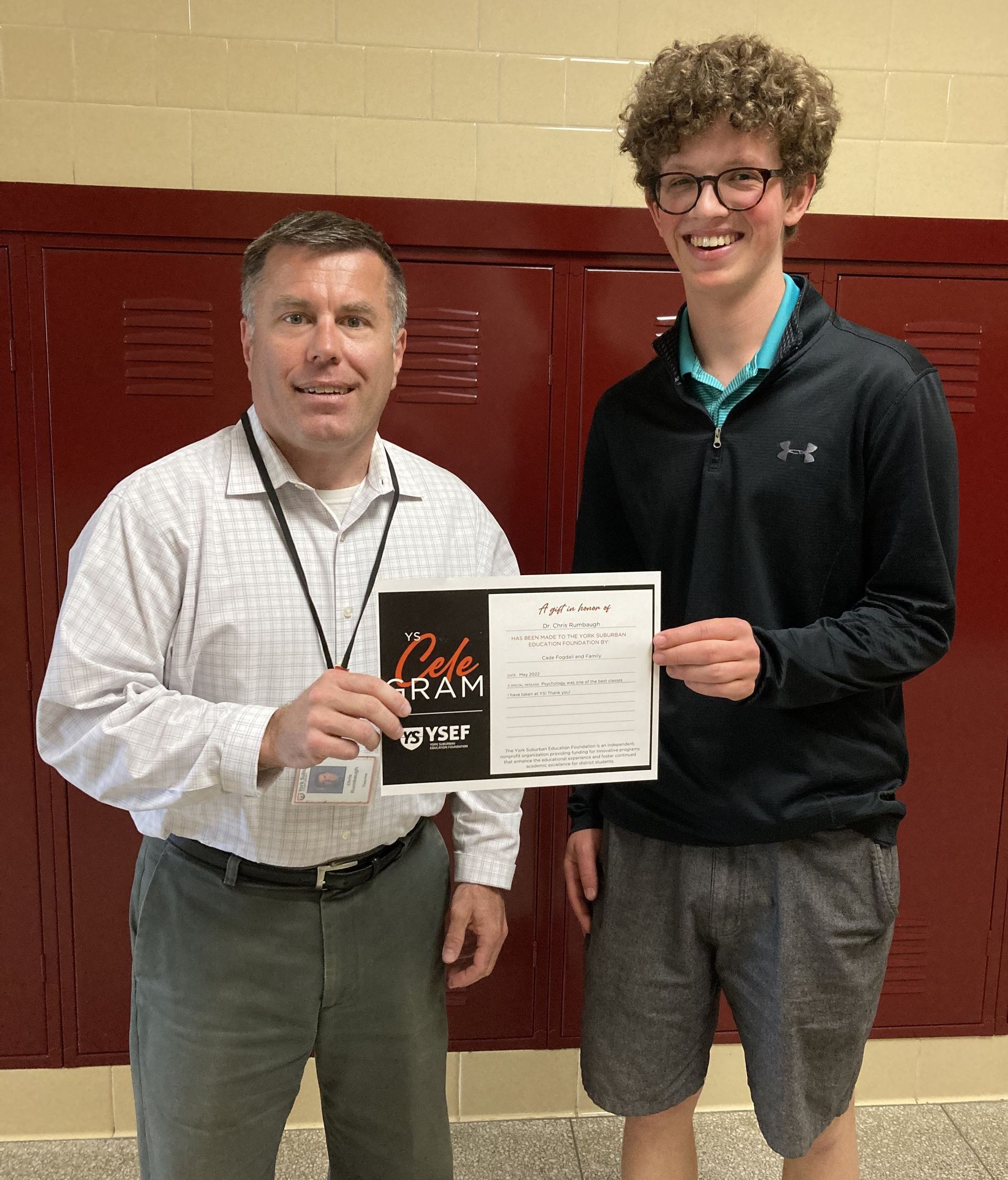Honor a teacher, administrator, staff member or community member while helping to fund the YS Education Foundation. YS CeleGrams are a unique gift to be given in addition to or instead of other holiday presents, but can also be used to commemorate birthdays, retirements, births, anniversaries, in memorandum.