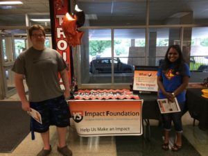 Former Students DJ Johnson and Sweeta Rasiyan work the back to school night table that helped to educate parents about The Impact Foundation.